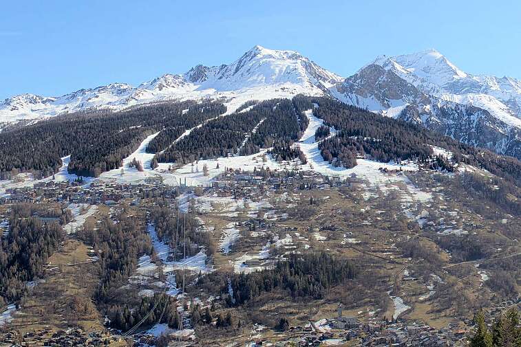 A panoramic view from the Fornelet at 1970m in Montalbert, useful to see the current snowline.
